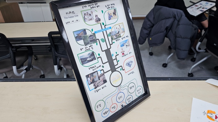 소바세만의 자료들을 활용하여 '자신의 행복나무'를 만드는 모습입니다.
