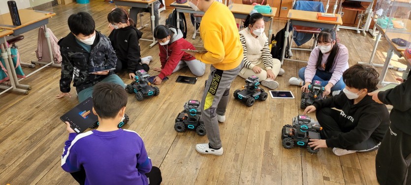 인공지능로봇 로보마스터 S1을 블럭코딩을 이용해 자연스럽게 코딩을 배워갑니다.