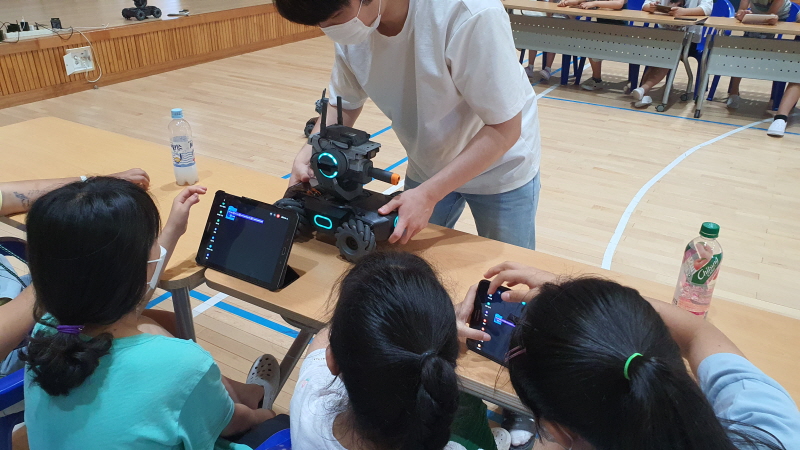 지난 8월 3일 곡성에 있는 오산초등학교 4~6학년 학생들 대상으로 '놀면서 배우는 인공지능 로봇' 프로그램을 시행하였다.