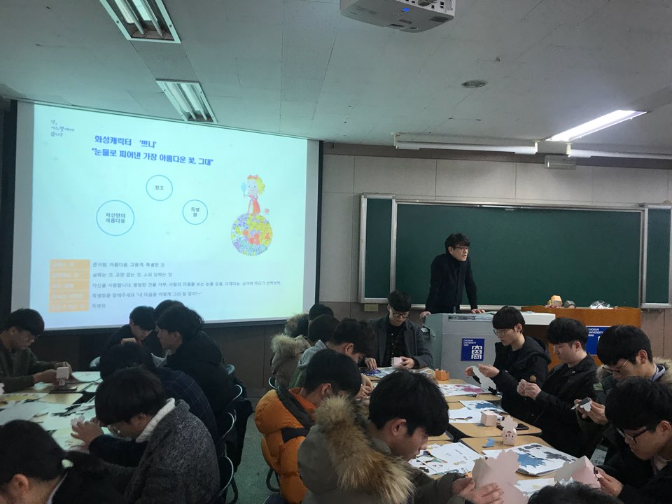 인성·진로 2018년 2월 조선대학교 신입생 오리엔테이션 입학전 교육 페이지 정보 작성자 최고관리자 댓글 0건 조회 9,998회 작성일 19-09-17 16:36 본문 2018년 2월 조선대학교 신입생 오리엔테이션 입학전 교육 강의 및 체험 - 신입생 1,000여명 대상 (경영학부, 경제학부, 기계공학과, 기계시스템공학과, 무역학과, 컴퓨터공학과, 전자공학부, 정보통신공학부)- 인성교육체험'넌 어느별에서 왔니?' 페이퍼토이 만들기- 가족, 친구, 선생님께 감사의 엽서 보내기 '의태어 비밀엽서' 목록 이전글2018년 3월 목포영화중학교 자유학기제 수업 체험활동 19.09.17 다음글[인성교육] 2018년 1월 산,학,관교육협력 SW교육강사 양성과정(한전KDN,전남교육청) 19.09.17 댓글목록 댓글목록 등록된 댓글이 없습니다.
