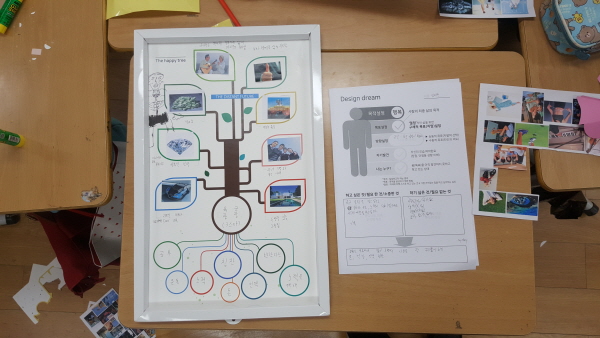 이곳 뿐만이 아니라 여러 학교에서 많은 학생들이 자신의 꿈을 아직 발견하지 못하고 있는걸 봤어요. '내 맘대로 꿈 이야기'는 이러한 학생들에게 자신의 장점과 강점을 이해, 발견하여 자신의 꿈을 설계하고 구체화 시켜보는 시간입니다. 아직 어린 학생들에겐 꿈(목표)은 아직 먼 미래의 일이지만 자신이 꿈꿔왔던 꿈이나 가상의 꿈을 설정하고 그것을 구체적으로 설계하고 꾸며봄으로 자신의 꿈을 찾는데 도움이 되기를 바래 봅니다. |