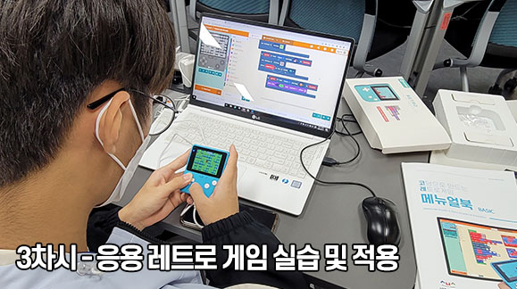 | 3교시 | 응용 레트로 게임 실습 및 적용 | 커스텀 된 게임 최종 테스트 게임기 입력을 통한 게임 즐기기(레트로 게임 입력 장비) |
