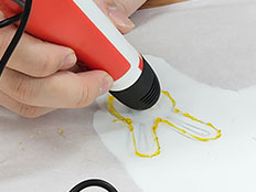 디자인된 스텐실 도안과 다양한 색상의 사탕 카트리지를 이용해 3D Candy Pen으로 출력하며 사탕을 제작합니다.