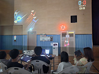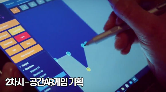 공간 증강 현실을 이용하여 벽이나 건물에 게임을 투사할 수 있는 플랫폼으로 에디터를 사용하여 창의적인 사고를 바탕으로 새로운 게임(슈팅 게임, 플랫폼 게임, 레이싱 게임 등)을 기획하고 제작할 수 있는 프로그램입니다. 다양한 장소에서 프로젝터를 통해 벽이나 바닥에 투사하여 재미있는 공간 증강현실을 경험할 수 있습니다.
