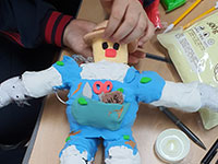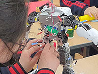 모둠 내 개개인의 관심분야(로봇 조립, 로봇의상 디자인, 사회)를 분업하여 로봇 제작