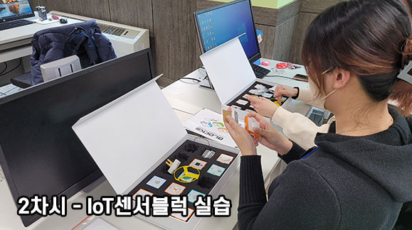 | 2교시 | IoT 센서 블럭 실습 | 다양한 센서 구현 실생활에 적용된 IoT 센서 제어 사례 구현 센서의 응용 활용 |