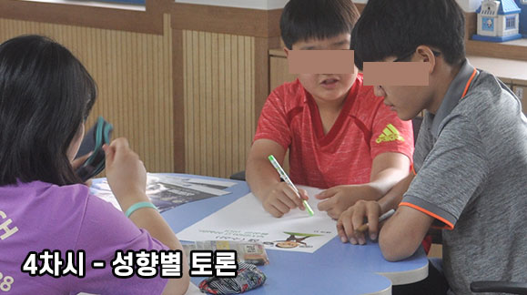 | 4교시 | 성향별 토론 | 나와 친구의 생각이 틀린 게 아닌 다른 것을 이해하기 |
