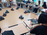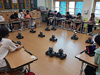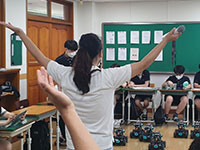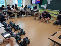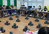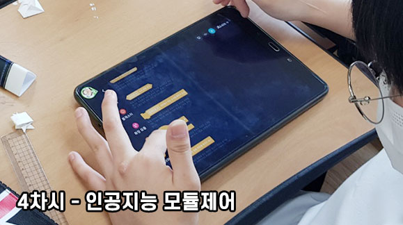 다양한 인공지능 기능을 블록 코딩으로 제어하고 체험할 수 있으며 알고리즘 게임룰을 적용한 로봇게임도 즐길 수 있는 시간