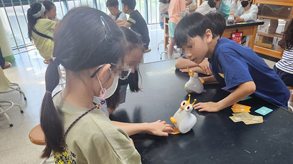 알버트 AI 로봇은 언플러그드 코딩 로봇에 인공지능 스피커가 내장되어 음성인식을 통한 로봇제어와 다양한 정보를 알려주는 인공지능 로봇입니다. 귀여운 모습의 알버트는 아이들에게 인기가 있어 수업 집중도가 높아 자연스럽게 코딩의 원리를 익힐 수 있는 로봇입니다.