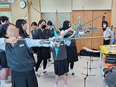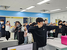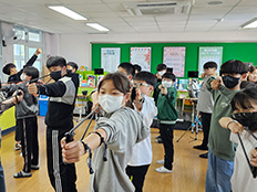 실제 양궁 경험을 시뮬레이션하기 위해 실제 리커브 활과 화살을 사용하여 언제 어디서나 사격이 가능한 가상 현실 기술과 애플리케이션이 결합된 몰입형 양궁 체육활동입니다.  양궁의 규칙과 자세를 배워보고 실제 활과 화살을 사용하여 가상 표적에 쏴보는 체험을 통해 집중력을 향상시키고 학업 스트레스를 해소할 수 있었으며 이색 직업을 체험하고 탐색할 수 있는 프로그램입니다.