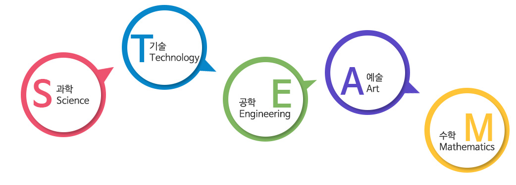 STEAM은 Science, Technology, Engineering, Arts, Mathematics에서 각각 앞글자만 따온 것 입니다. 이를 직역한다면 과학·기술·공학·예술·수학을 의미한다고 할 수 있는데, 이는 단순히 과학이나 수학과 같은 전형적인 이공계의 학문을 넘어서 예술(미적인 요소)과 같은 새로운 분야를 과학기술분야에 융합함으로써 더욱 창의적이고 독창적인 성과를 낼 수 있도록 하는 교육 정책을 의미합니다.