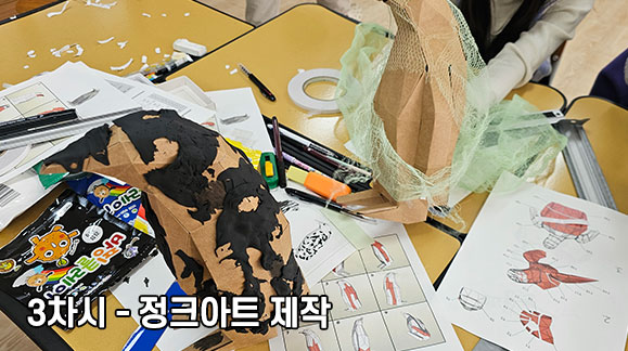| 1교시 | 환경문제와 정크아트 | 쓰레기로 고통받는 생물 소개와 사례 정크아트의 개념과 예술적 전환 |