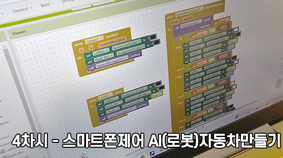 | 4교시 | 스마트폰 제어 AI 스마트 (로봇)자동차 만들기 | ▪ 블록코딩 로봇제어 코드 생성 |