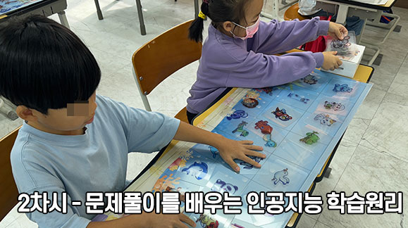 다양한 바다생물과 육지생물 카드, 맵을 이용한 코딩교육으로 인공지능의 비지도 학습개념을 적용하여 학생들이 직접 이야기를 만들고 이를 문제로 만들어 공유하는 코딩 프로그램입니다.