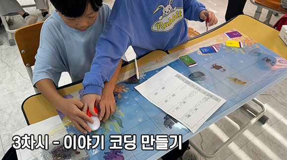 | 3교시 | 이야기 코딩 만들기 | 동물카드와 맵을 이용한 창의적 문제 개발 (2인 1조) |