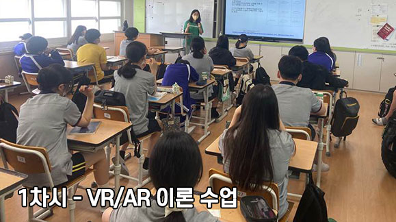 | 1교시 | VR/AR 이론수업 | 가까운 미래, VR/AR은 일상의 일부로 다가오게 됨으로 옳바른 이해와 미래에 적용될 가상세계에 대해 영상을 통해 이해한다. |